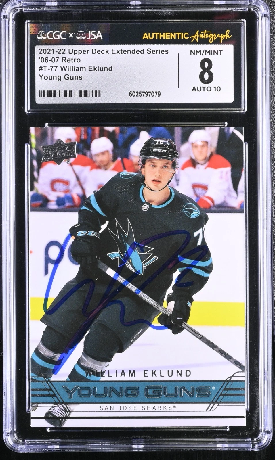 WILLIAM EKLUND SIGNED 2021-22 UPPER DECK YOUNG GUNS CARD #T-77 CGC 8 JSA 10 AUTO COLLECTIBLE MEMORABILIA