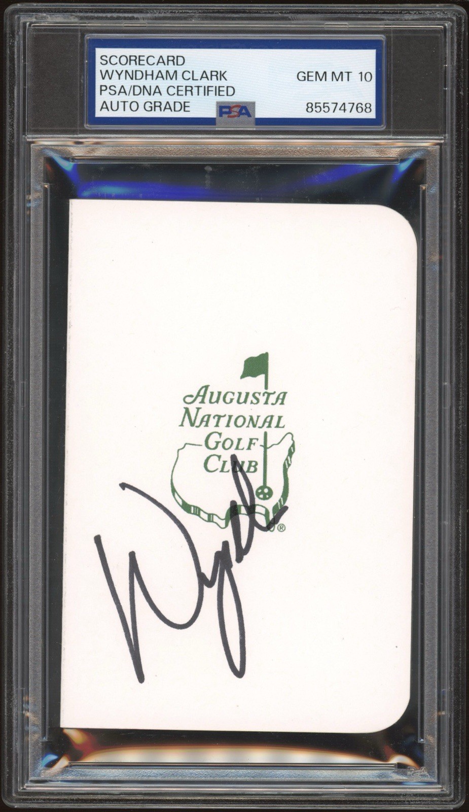 WYNDHAM CLARK SIGNED AUGUSTA MASTERS GOLF SCORECARD PSA/DNA GEM MINT 10 AUTO PGA COLLECTIBLE MEMORABILIA