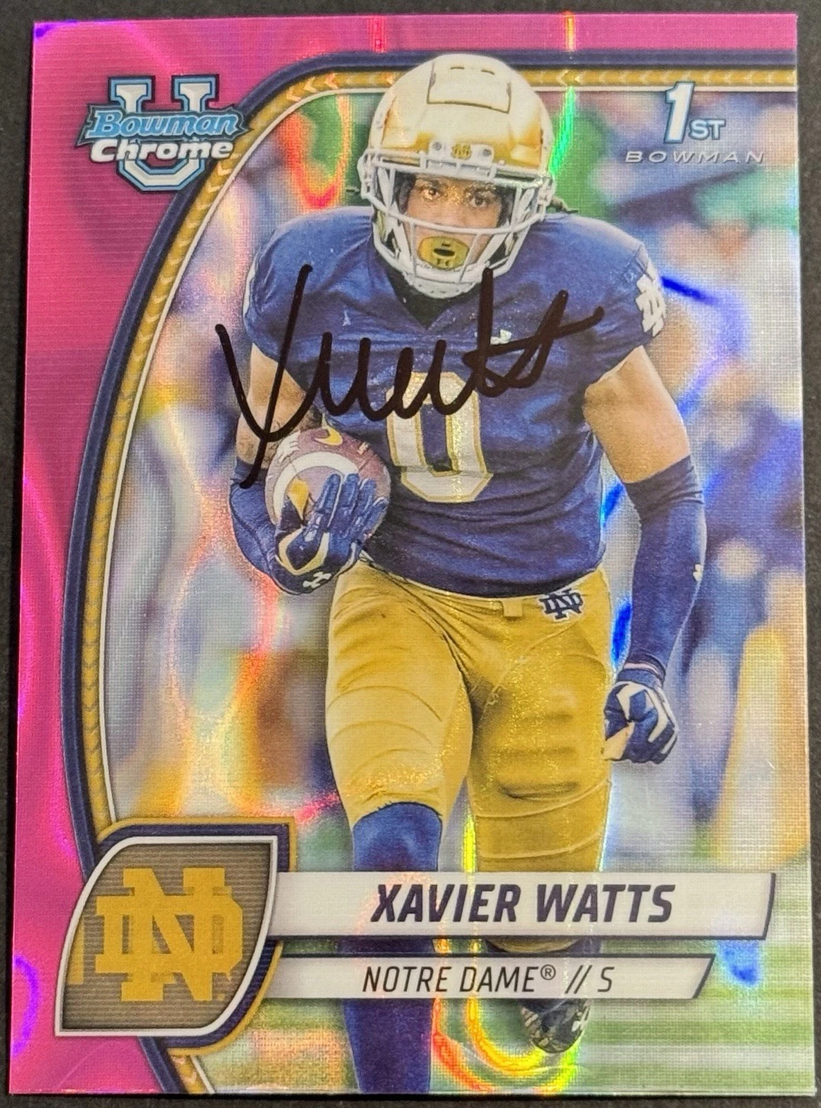 XAVIER WATTS SIGNED NOTRE DAME 2024 BOWMAN CHROME U ROOKIE CARD BAS BECKETT COLLECTIBLE MEMORABILIA