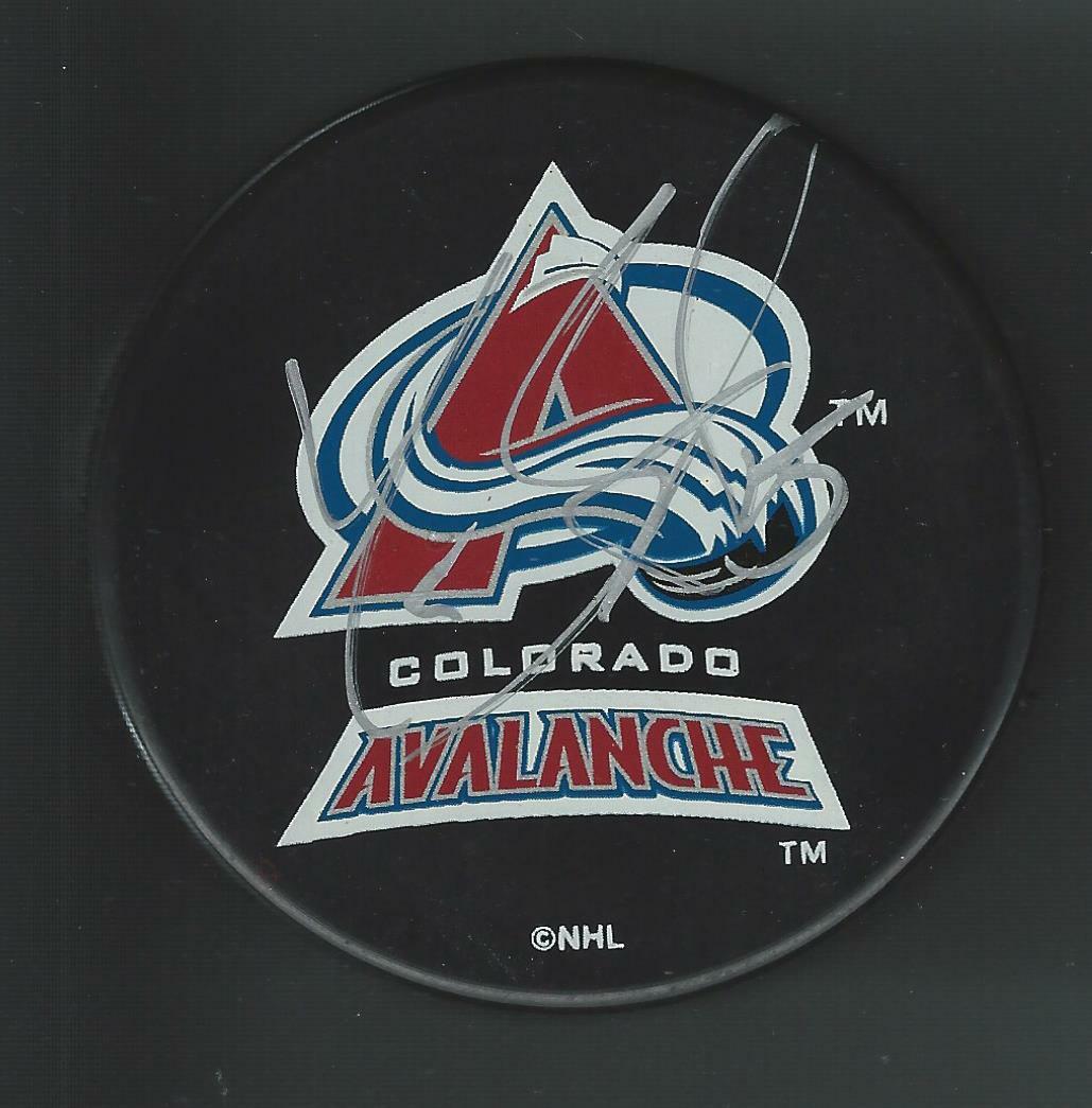 YVES SARAULT SIGNED COLORADO AVALANCHE SOUVENIR PUCK COLLECTIBLE MEMORABILIA