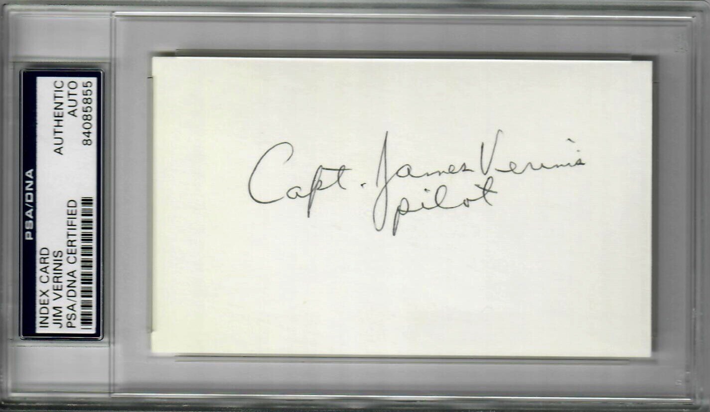 JIM VERINIS SIGNED INDEX CARD PSA DNA 84085855 (D) WWII MEMPHIS BELLE CO-PILOT COLLECTIBLE MEMORABILIA