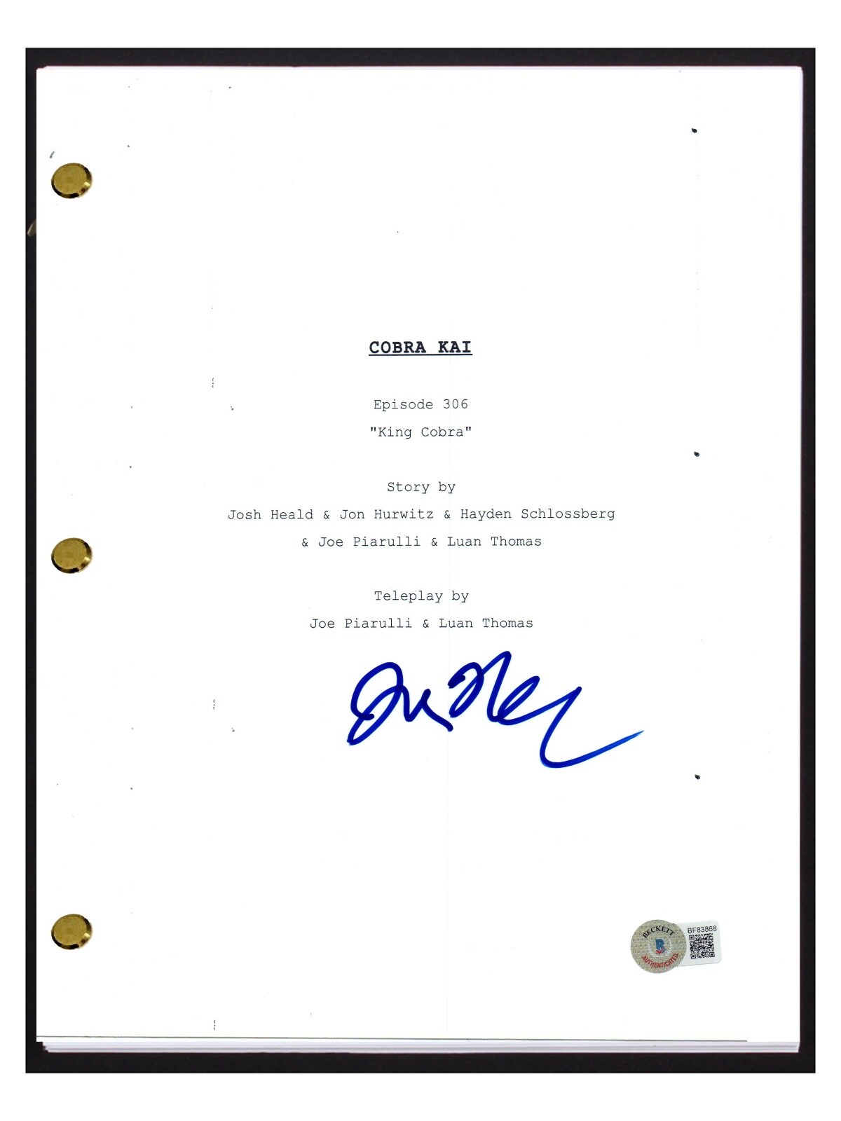 JON HURWITZ SIGNED AUTOGRAPHED COBRA KAI EPISODE SCRIPT SHOW CREATOR BECKETT COA COLLECTIBLE MEMORABILIA