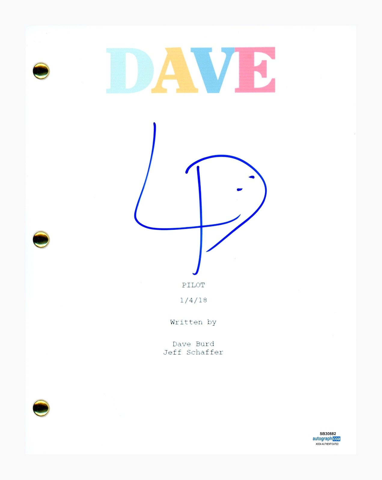 LIL DICKY DAVE BURD SIGNED AUTOGRAPHED DAVE PILOT SCRIPT SCREENPLAY ACOA COA COLLECTIBLE MEMORABILIA