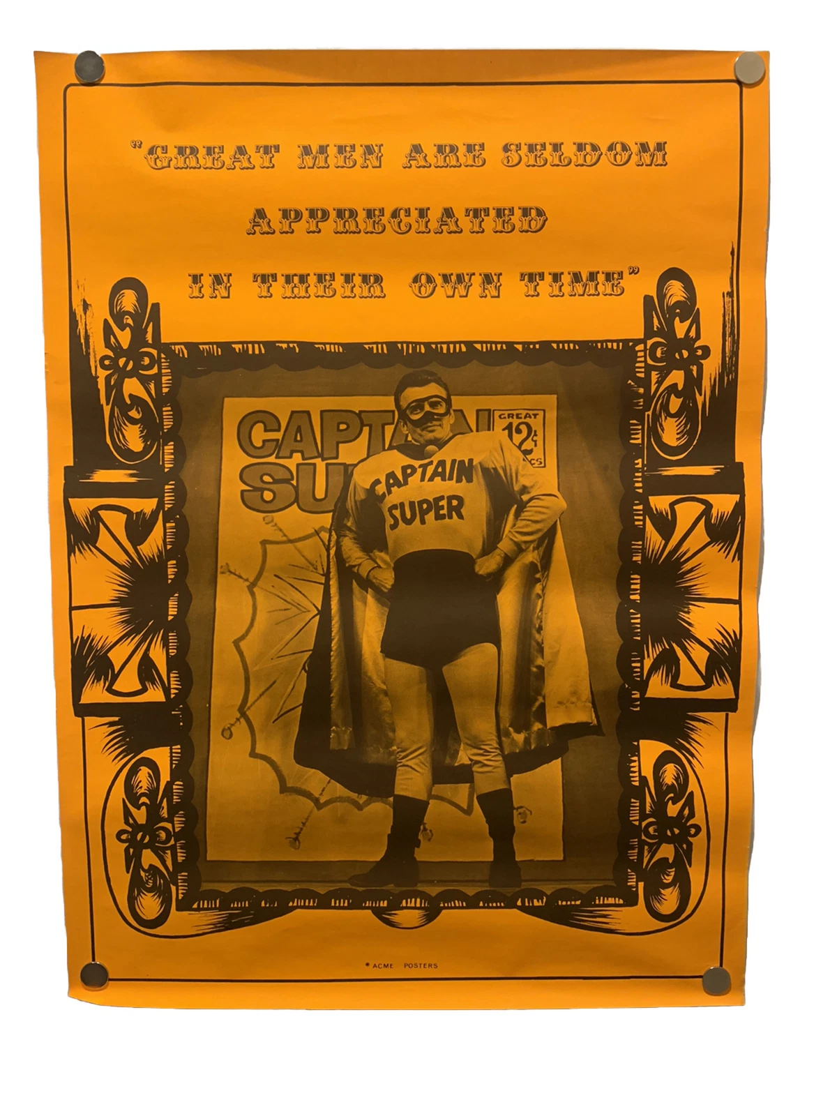 WALLACE & LADMO CAPTAIN SUPER VINTAGE 1980’S ORIGINAL 18″ X 24″ ORANGE POSTER 7 COLLECTIBLE MEMORABILIA