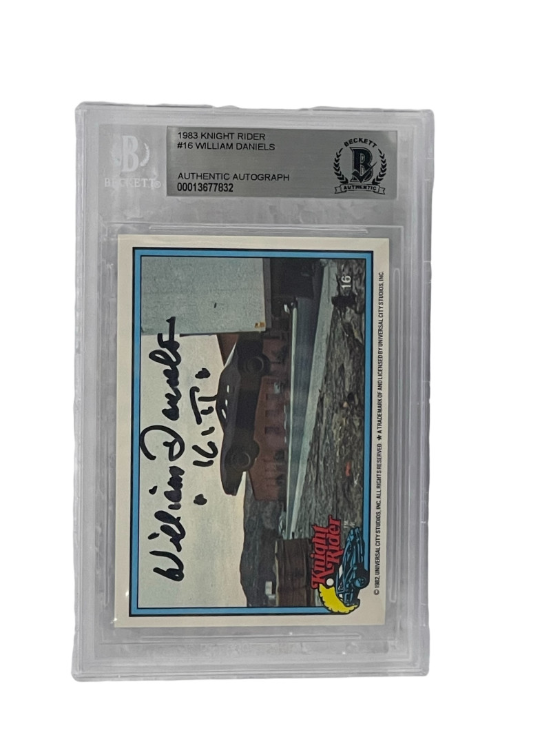 WILLIAM DANIELS SIGNED KNIGHT RIDER DONRUSS TRADING CARD #16 SLABBED BECKETT 1 COLLECTIBLE MEMORABILIA