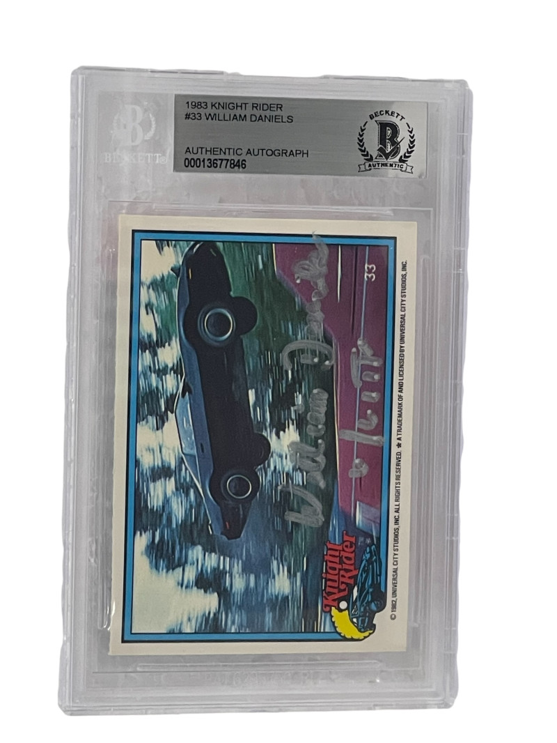 WILLIAM DANIELS SIGNED KNIGHT RIDER DONRUSS TRADING CARD #33 SLABBED BECKETT 2 COLLECTIBLE MEMORABILIA