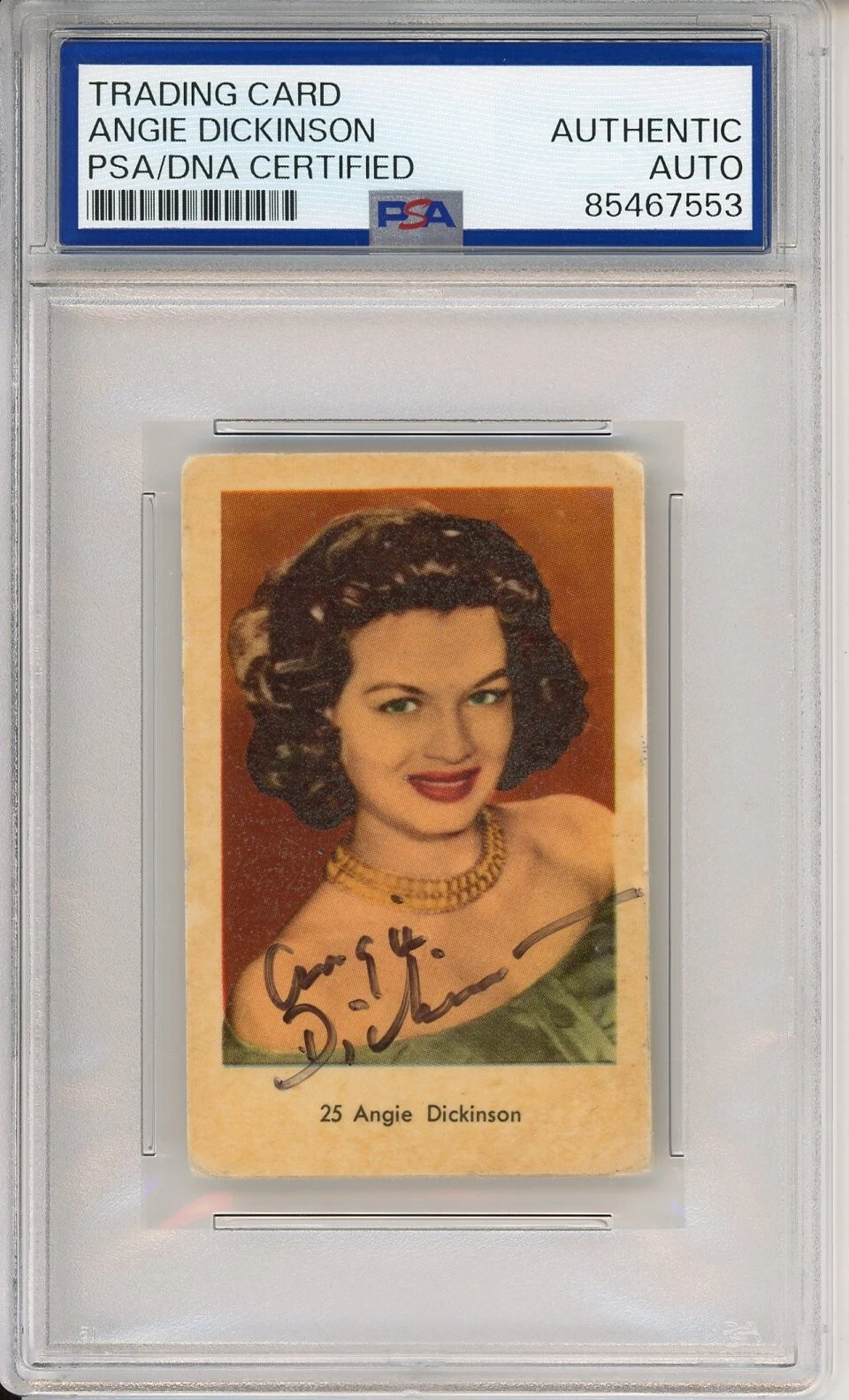 ANGIE DICKINSON SIGNED 1950’S VINTAGE DUTCH TRADING CARD PSA DNA COA AUTOGRAPH COLLECTIBLE MEMORABILIA
