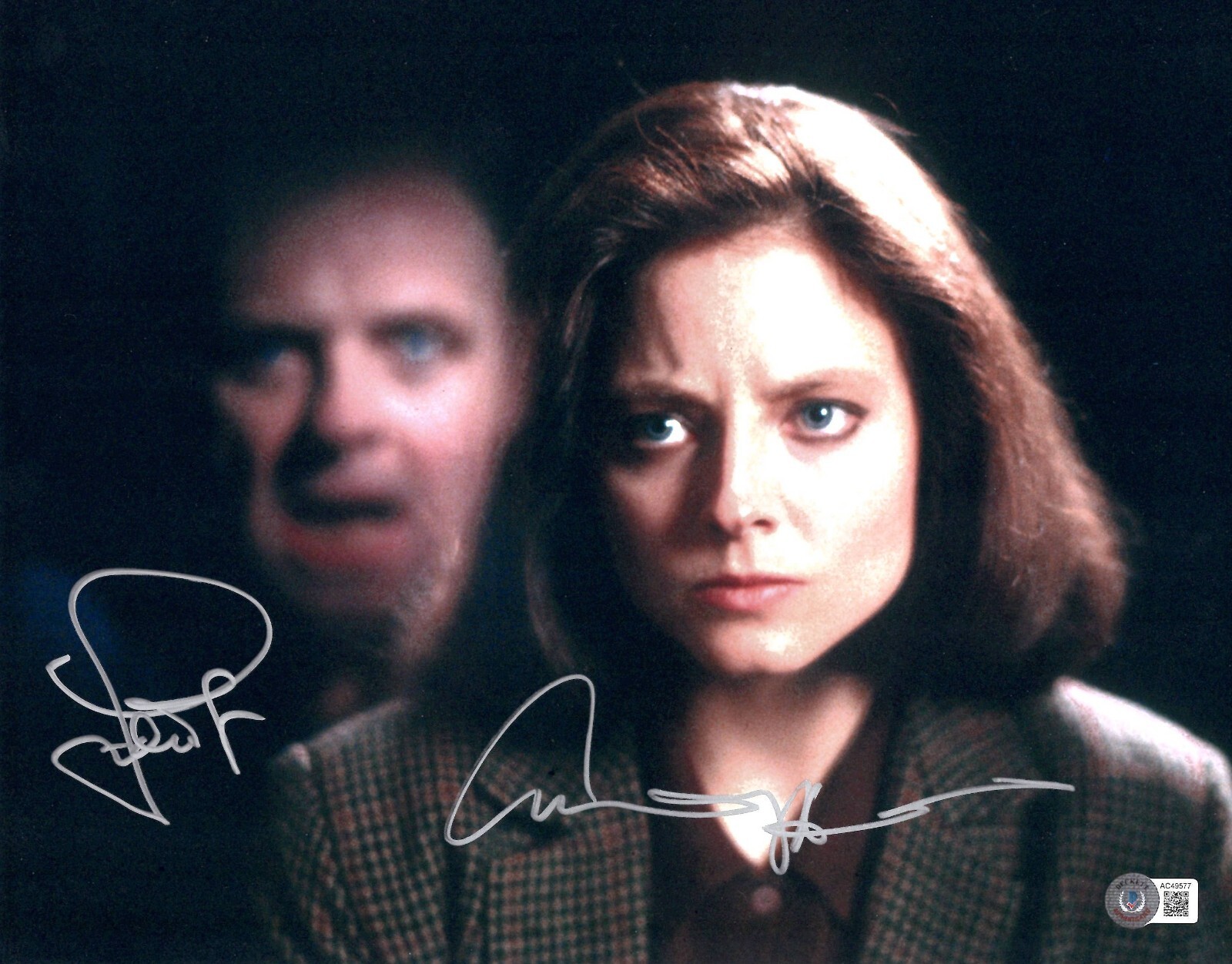 ANTHONY HOPKINS JODIE FOSTER SIGNED 11×14 PHOTO THE SILENCE OF THE LAMBS BECKETT COLLECTIBLE MEMORABILIA