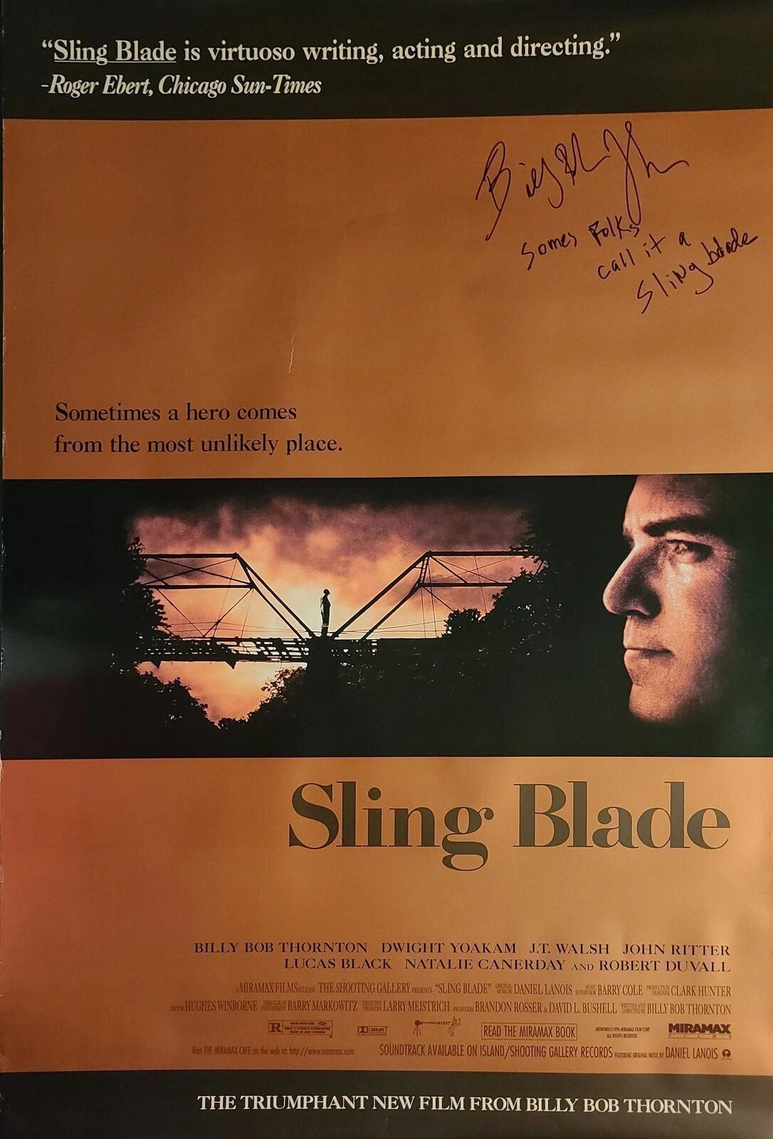 BILLY BOB THORNTON AUTOGRAPHED ORIGINAL SLING BLADE POSTER W MOVIE QUOTE EXACT P COLLECTIBLE MEMORABILIA