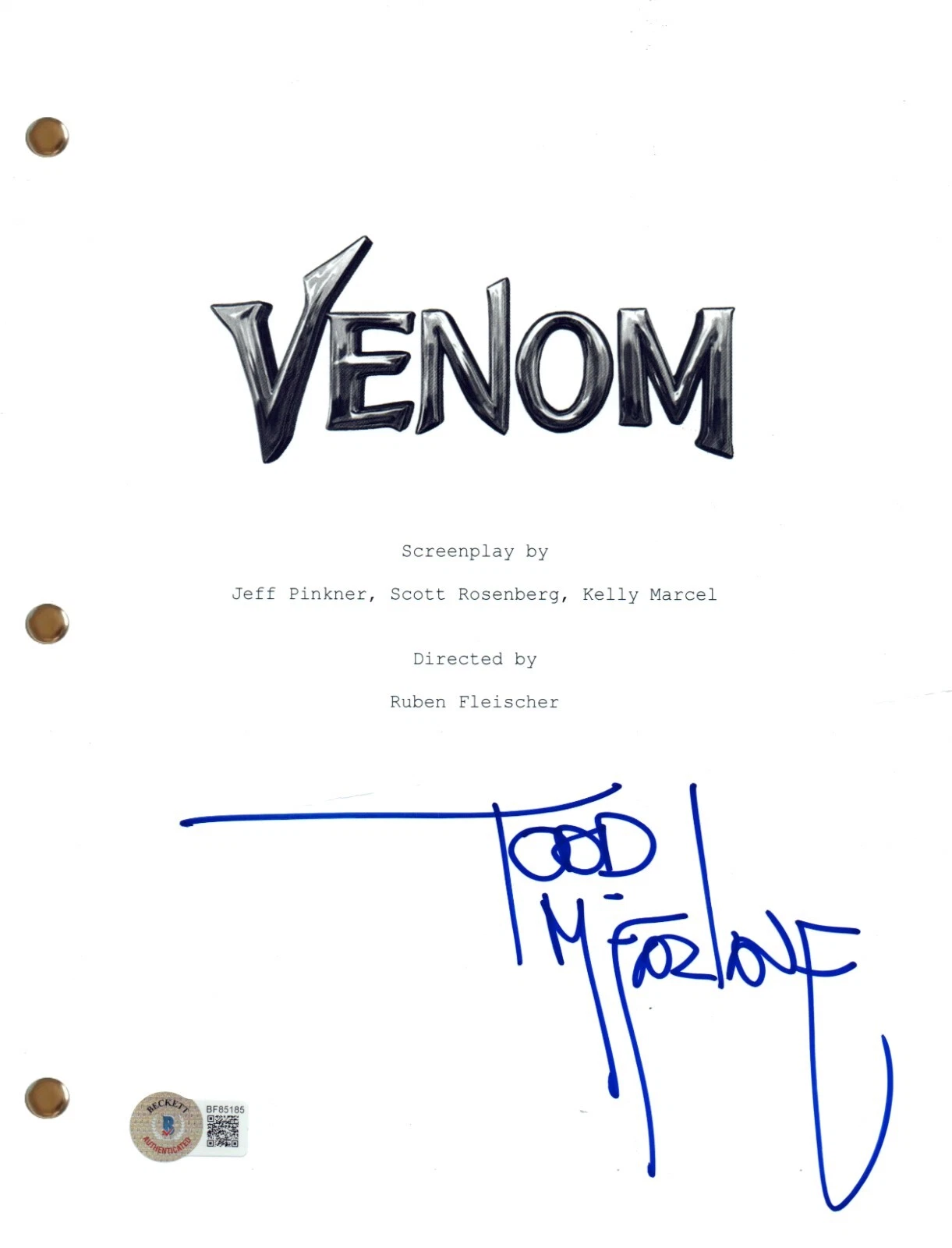 TODD MCFARLANE SIGNED AUTOGRAPH VENOM MOVIE SCRIPT MARVEL BECKETT COA COLLECTIBLE MEMORABILIA