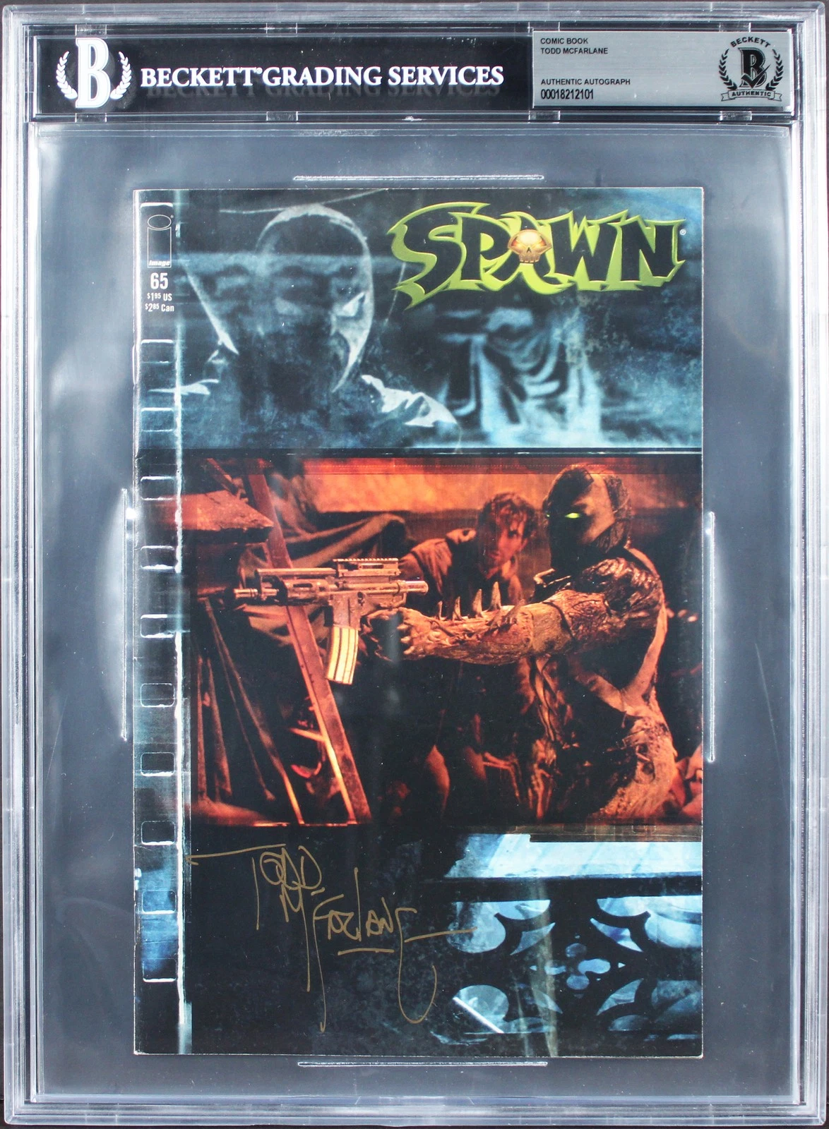 TODD MCFARLANE SPAWN AUTHENTIC SIGNED 1997 SPAWN #65 COMIC BOOK BAS SLABBED COLLECTIBLE MEMORABILIA