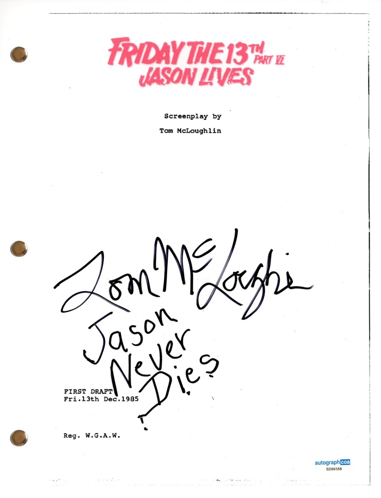 TOM MCLOUGHLIN FRIDAY THE 13TH JASON LIVES SIGNED AUTOGRAPH MOVIE SCRIPT ACOA COLLECTIBLE MEMORABILIA