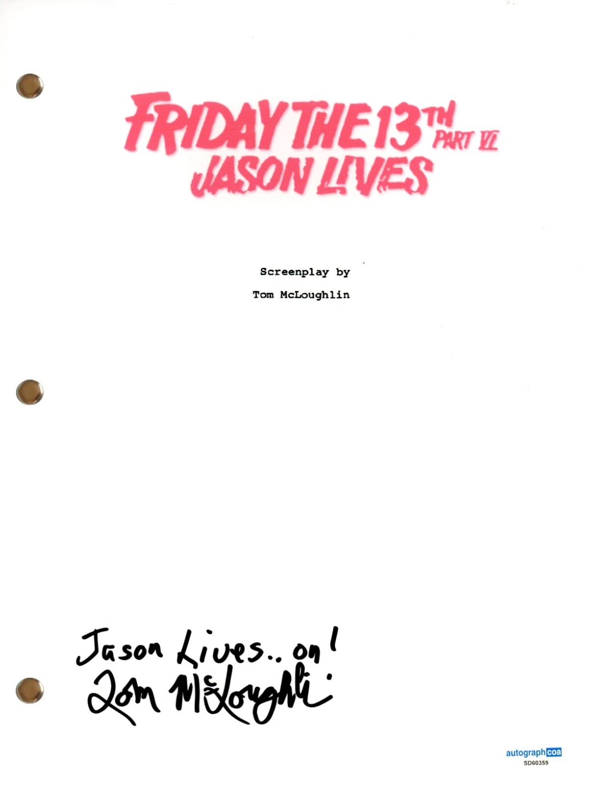 TOM MCLOUGHLIN “FRIDAY THE 13TH VI” SIGNED AUTOGRAPH MOVIE SCRIPT HORROR COA COLLECTIBLE MEMORABILIA
