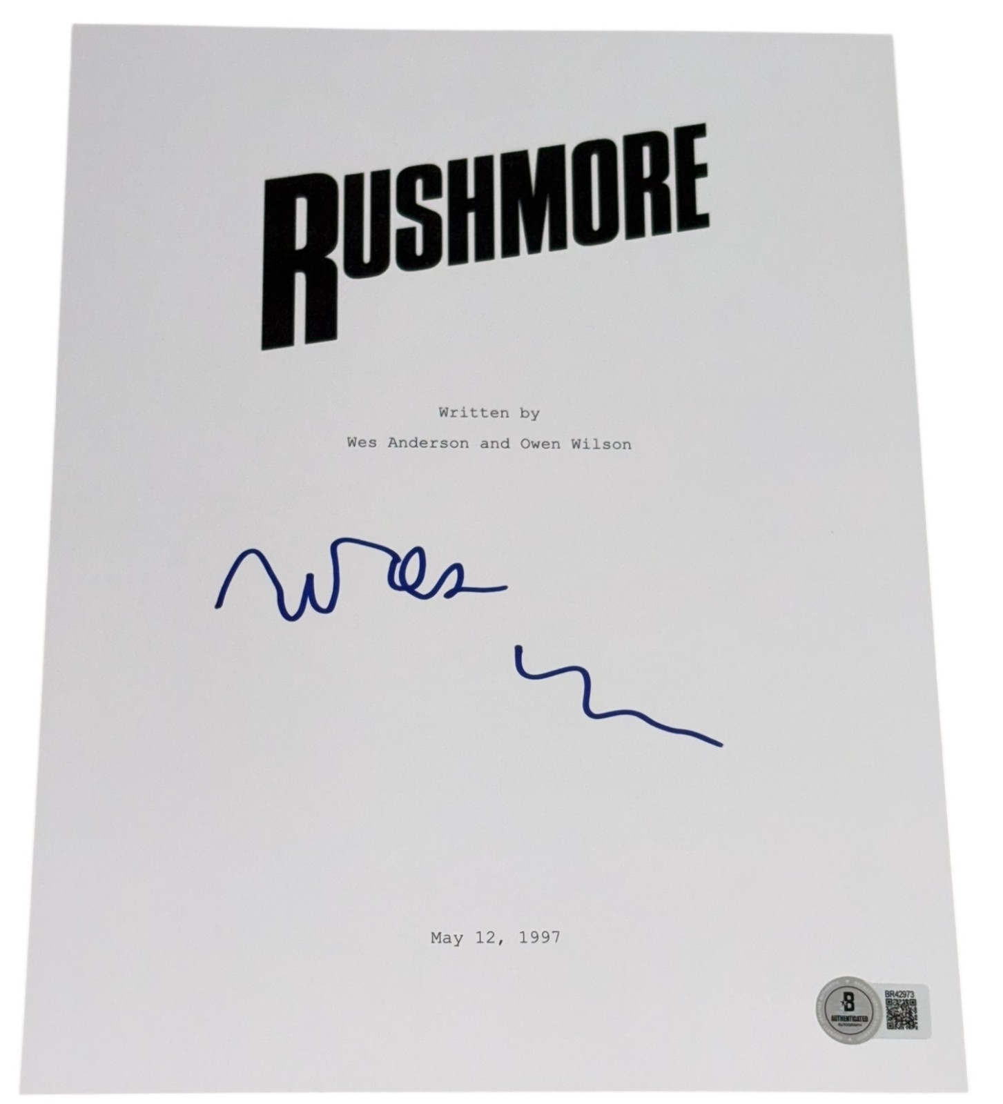 WES ANDERSON SIGNED AUTOGRAPH RUSHMORE FULL MOVIE SCRIPT SCREENPLAY BECKETT BAS COLLECTIBLE MEMORABILIA