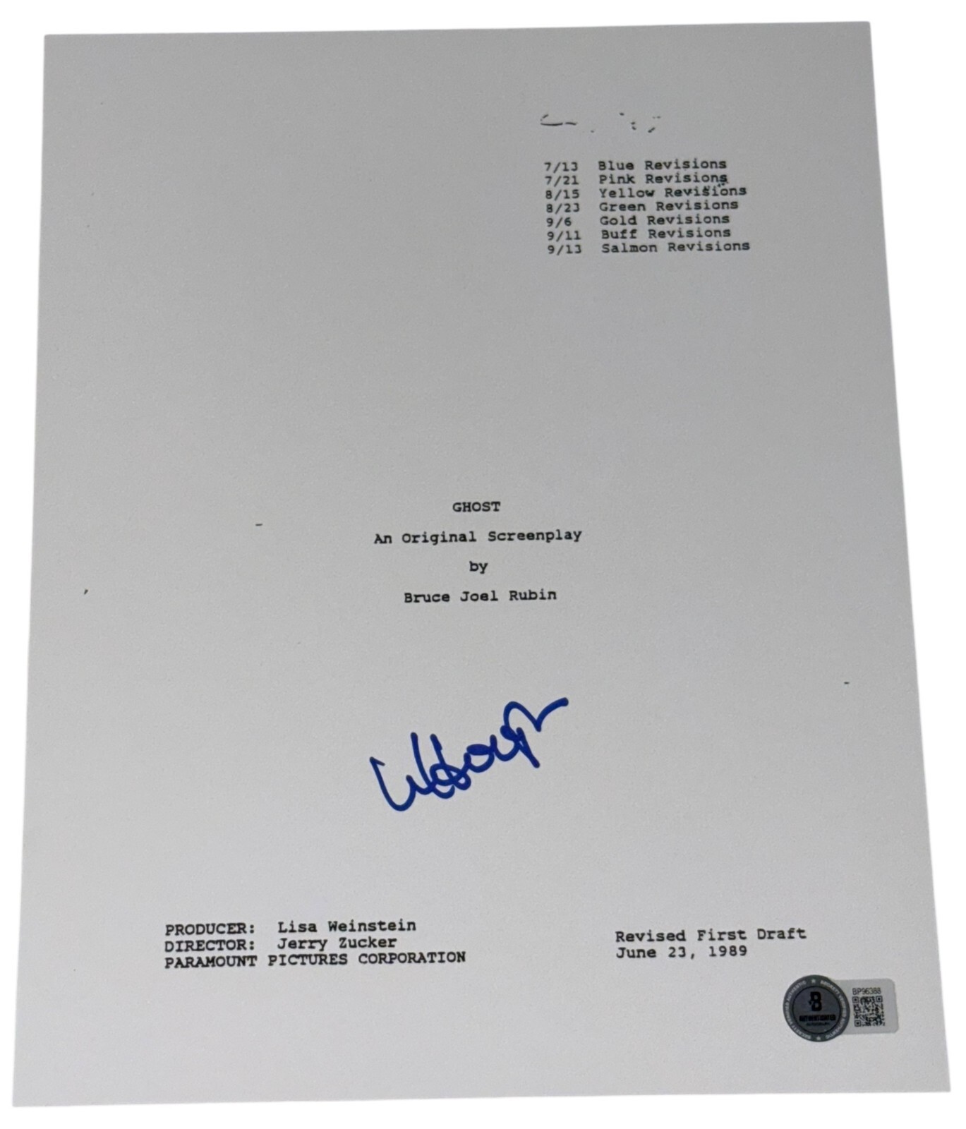 WHOOPI GOLDBERG SIGNED AUTOGRAPH GHOST FULL MOVIE SCRIPT SCREENPLAY BECKETT BAS COLLECTIBLE MEMORABILIA