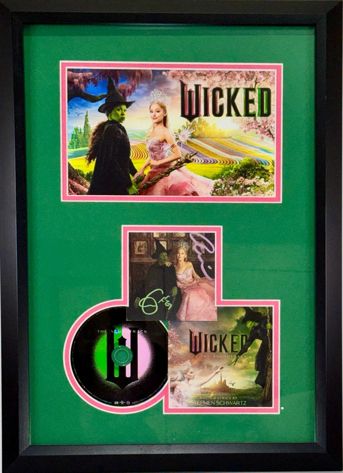 WICKED ARIANA GRANDE CYNTHIA ERIVO SIGNED FRAMED AUTOGRAPH CD INSERT JSA COA COLLECTIBLE MEMORABILIA